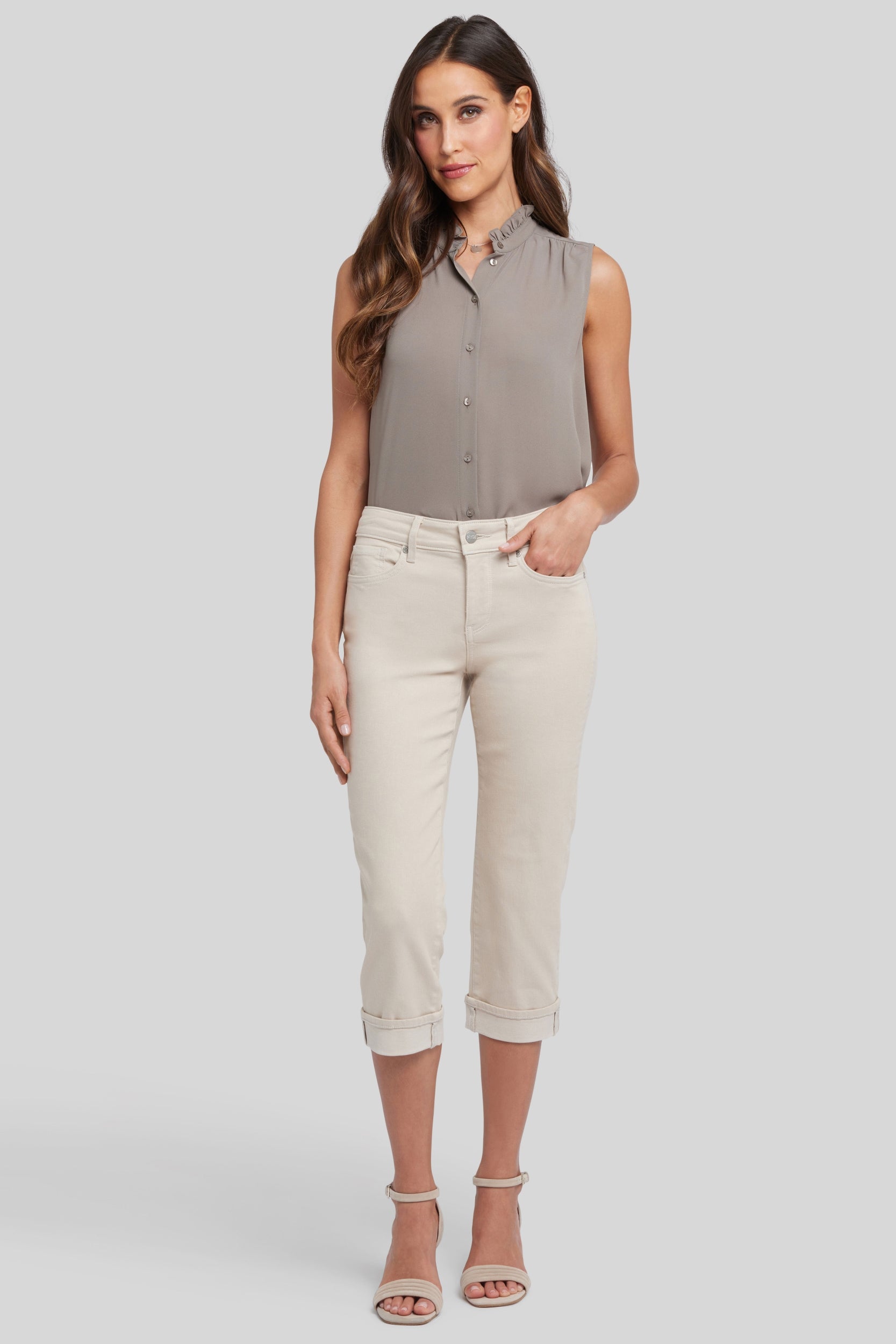 Je kunt niet fout gaan met onze iconische bestverkopende pasvorm. De curve-beeldhouwende, figuur-verlengende constructie van NYDJ's Marilyn Straight Crop Jeans in Cool Embrace® Denim past goed bij alles, in een rechte pijp silhouet met een omgeslagen zoom. Ademende, temperatuur-regulerende Cool Embrace® Denim houdt je comfortabel terwijl de hitte stijgt, terwijl onze Lift Tuck® Technology een gepatenteerd afslankend paneel met een kruislings ontwerp gebruikt om je rondingen vorm te geven en te ondersteunen. Afgewerkt met vijf-pocket styling en een rits met knoopsluiting. Deze jeans is gemaakt met milieuvriendelijke methoden die resulteren in verminderd verbruik van water, chemicaliën