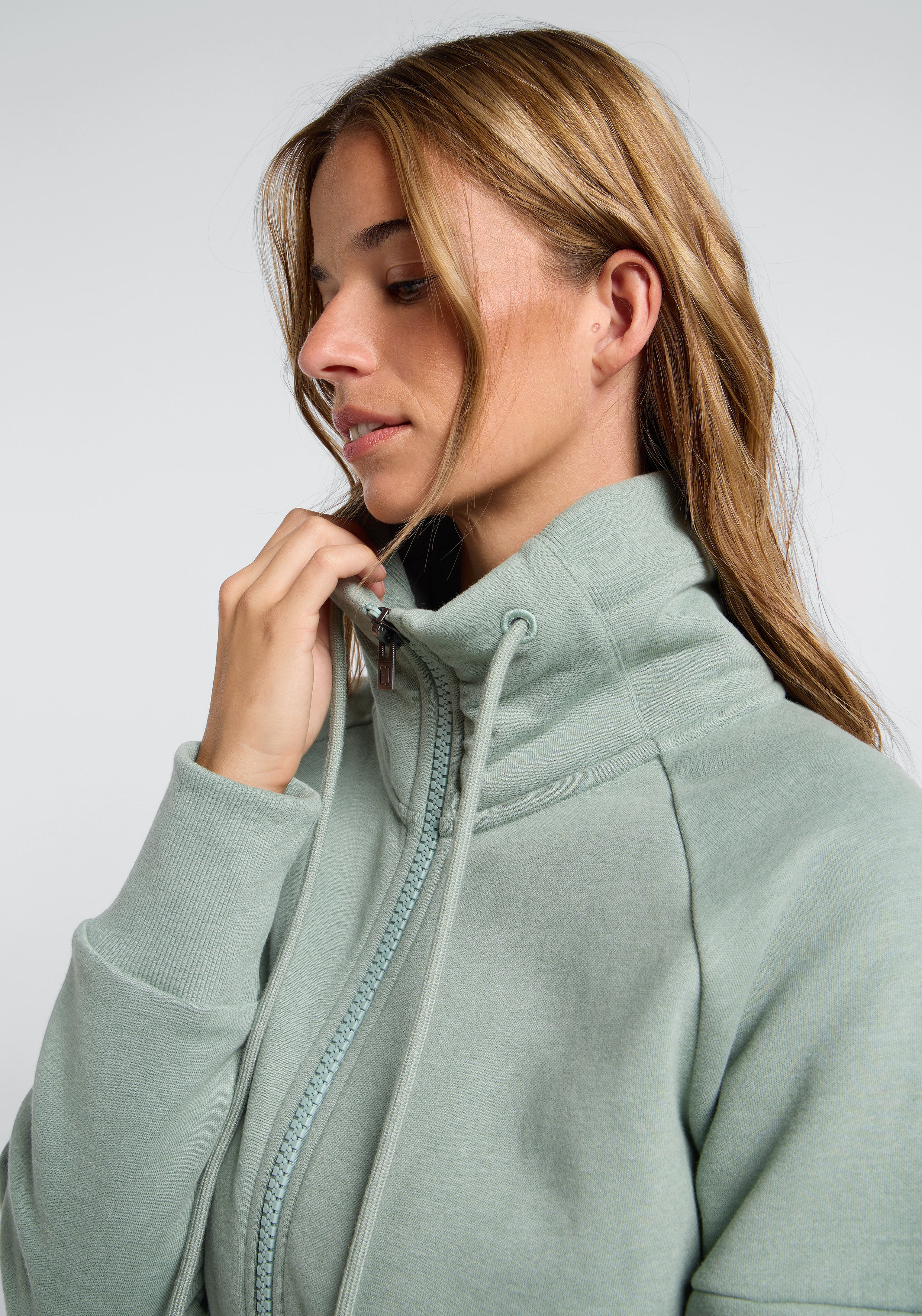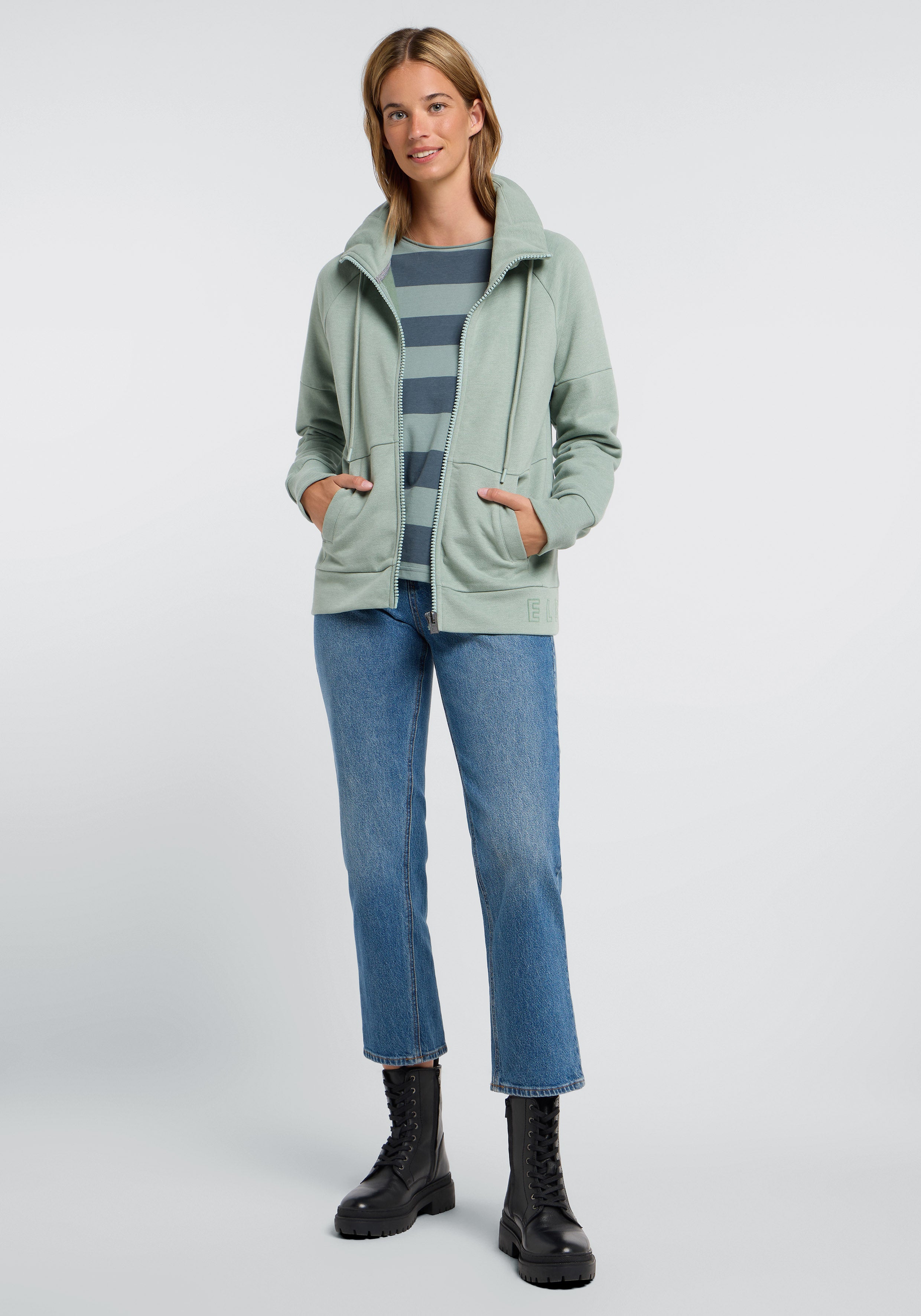 Onze Elbsand Airin Sweatvest heeft een losvallende pasvorm en is gemaakt van zachte sweatstof in melange-look met een knusse, geborstelde binnenkant. Het heeft een hoge opstaande kraag met ribgebreid inzetstuk, praktische opgestikte zakken en een rechte boordafwerking. Een zachte flockprint op de boord zorgt voor een subtiele, sportieve touch. Deze sweatvest combineert stijl en comfort en is ideaal voor relaxte dagen, wandelingen, winkelen of lekker ontspannen. Hij past perfect bij jeans, leggings of joggingbroeken. De sweatvest bestaat uit 67% katoen en 33% polyester, is dik en warm met opstaande kraag en ritssluiting. Wasvoorschrift: Machinewas op 30 graden fijnwasprogramma, niet geschikt voor de droger.