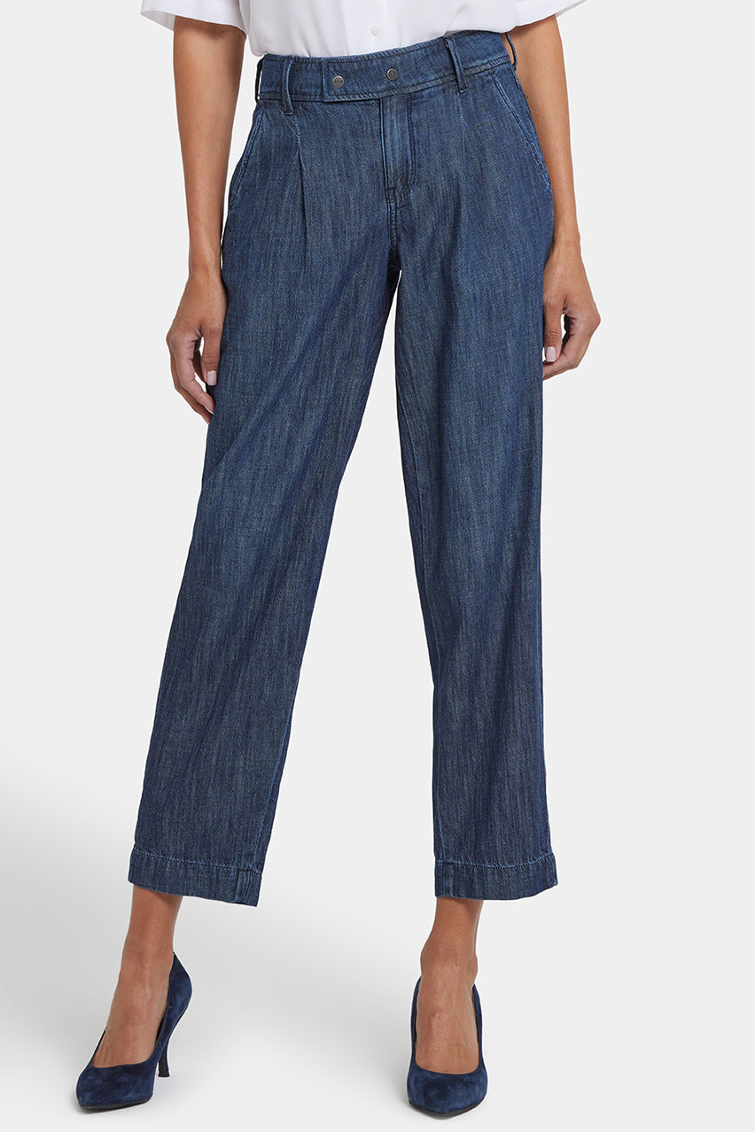 NYDJ's Balloon Trouser Jeans is een relaxte jeans van een zachte en lichte katoenen denim. Ontworpen om iets lager op de taille te dragen, maar ook te dragen als een high-rise stijl die tot de natuurlijke taille wordt opgetrokken. Afgewerkt met een ritssluiting, een tabwaistband met drukknoopsluitingen, voorplooien, voorzakken en achterzakken.