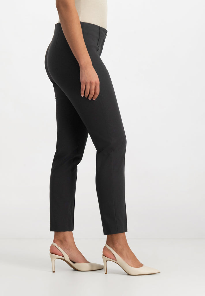 De Janet techno-stretch broek is ontworpen voor de vrouw die onderweg is. De broek heeft een middelhoge, getailleerde pasvorm die dankzij de hoog-elastische technische stof uitstekende bewegingsvrijheid en comfort biedt – vooral tijdens het reizen. Het materiaal is glad en kreukvrij, zodat de broek er altijd netjes uitziet, ideaal voor lange reisdagen of drukke werkdagen. Klassieke details zoals steekzakken en een slanke tailleband geven deze broek een cleane, veelzijdige uitstraling die moeiteloos meebeweegt van de reis naar de bestemming.