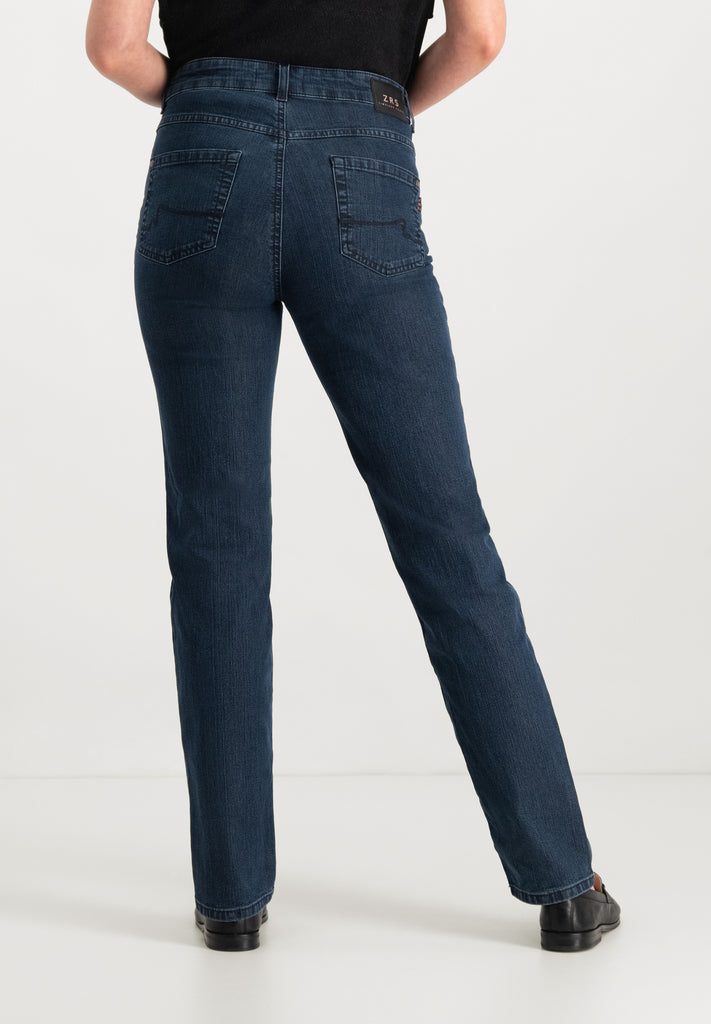 De Kora Denim Classics Straight Jeans in regular fit en 5-pocket stijl biedt een iets ruimere taille en een slankere pasvorm op het bovenbeen. Met een comfortabele pasvorm, flatterende pasvorm aan de achterkant en slanke dijwijdte, is dit de ideale broek voor vrouwen met een bredere taille die een flatterende en comfortabele jeans zoeken.