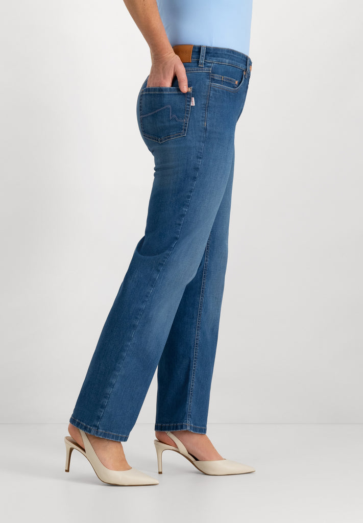 De Kora Denim Classics Straight Jeans heeft een regular fit in klassieke 5-pocketstijl, met iets meer ruimte in de taille en een slanker silhouet bij de bovenbenen. Dankzij de comfortabele snit, de flatterende achterkant en de smalle bovenbeenwijdte is deze jeans ideaal voor vrouwen met een wat bredere taille die toch een stijlvolle en comfortabele pasvorm willen. Bovendien wordt dankzij de WISER WASH-technologie de lichte wassing van deze jeans op milieuvriendelijke wijze bereikt – een extra pluspunt op het gebied van duurzaamheid.