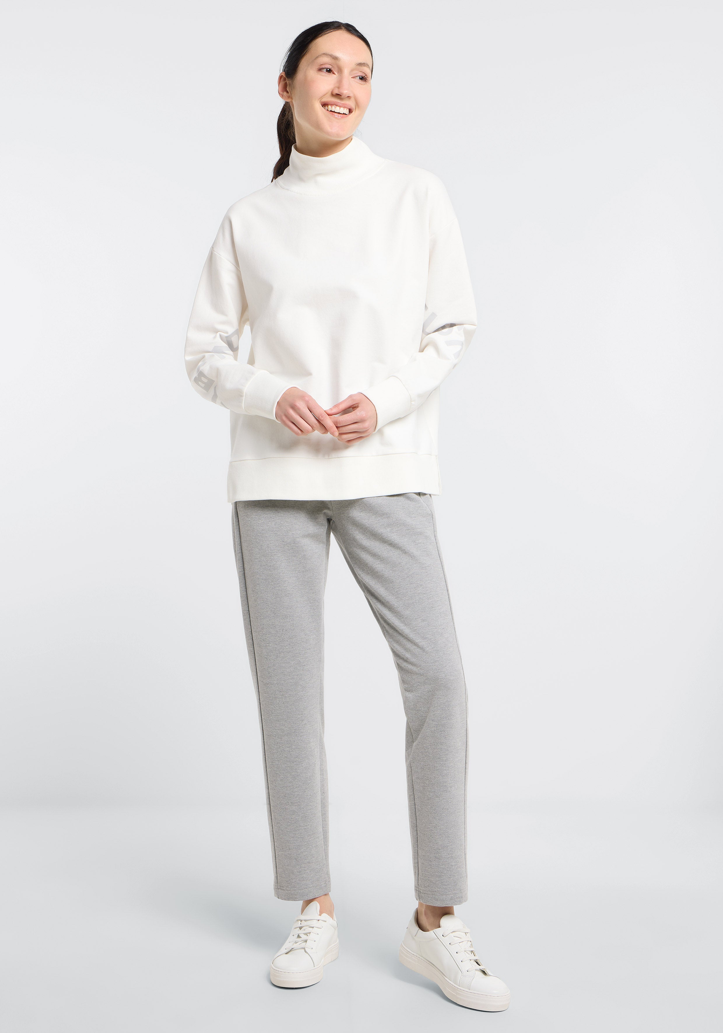 Onze Elbsand Linna Sweatshirt biedt een ontspannen stijl en comfortabel draagcomfort in een regular fit. Het is gemaakt van zachte, elastische sweatkwaliteit met een warme, geruwde en geborstelde binnenkant. De sweatshirt heeft een hogere kraag van ribgebreide stof en kleine splitten voor een moderne uitstraling. Een zachte rubberprint op de mouwen zorgt voor een stijlvolle, subtiele branding. Veelzijdig te combineren met jeans, joggingbroeken of jurken, is dit het perfecte sweatshirt voor vrouwen die comfort en design willen combineren. Samenstelling: 95% katoen, 5% elastaan. Wasvoorschrift: machinewas op 30 graden, fijnwasprogramma, niet geschikt voor de droger.
