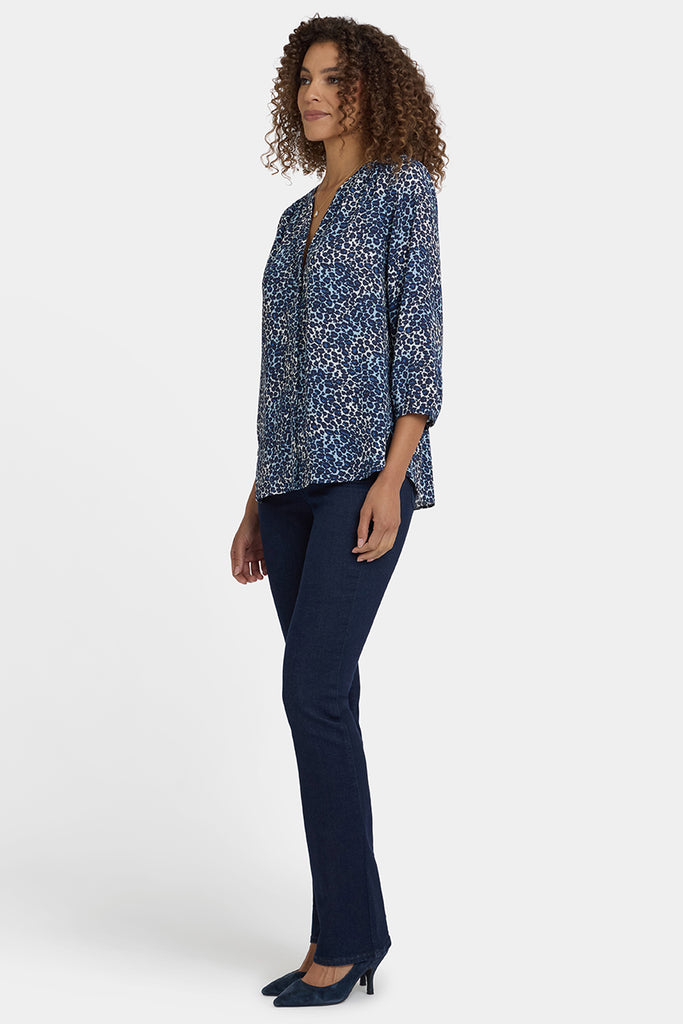 NYDJ's Pintuck Blouse heeft driekwart mouwen. De blouse is perfect te combineren met een van onze denim stijlen. Afgewerkt met een gespleten ronde halslijn, een volledig bedekte voorkant met knoopsluiting en knopen. De stof van deze blouse is gemaakt van een duurzame polyestervezel die is gemaakt van 100% post-consumer plastic afval, wat resulteert in minder water- en energieverbruik en minder broeikasgasemissies zonder de uitstraling en het gevoel van de stof te veranderen. De knopen zijn gemaakt van 50% post-consumer gerecycled polyester.