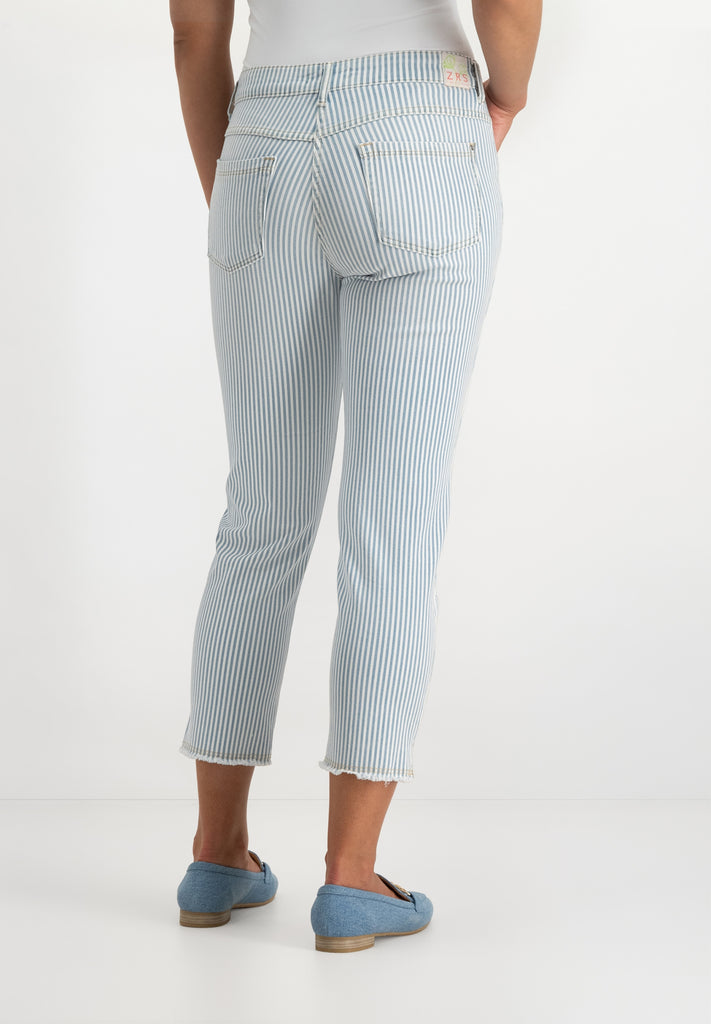 De Sarah slim 7/8-jeans geeft de klassieke jeans een moderne draai. Met een middelhoge taille en een slanke pijp tot boven de enkel flatteert dit model uw figuur terwijl het comfort behouden blijft. De verkorte lengte is perfect voor warmer weer en om uw favoriete schoenen te laten uitkomen, waardoor deze jeans een geliefde keuze is voor een chique, dagelijkse stijl. Bovendien is dit model afgewerkt met WISER WASH-technologie voor een milieuvriendelijk productieproces van de lichte wassing.