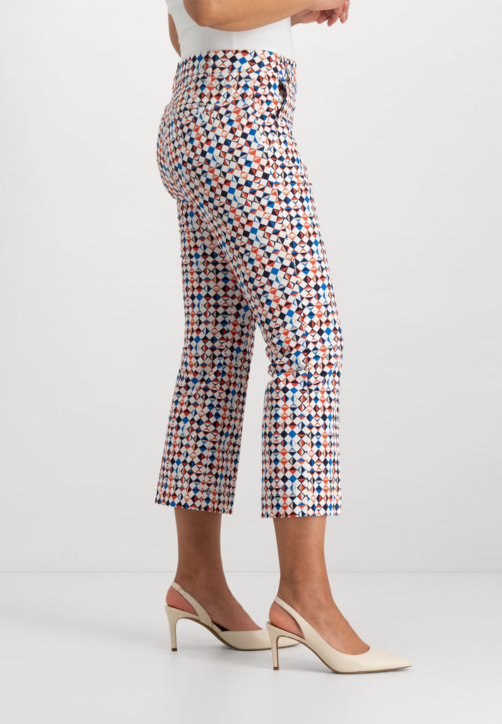 De Verena bootcut-chinobroek combineert tijdloze chino-uitstraling met een subtiele bootcut. De broek heeft een comfortabele middelhoge taille en valt passend langs heupen en dijen, om vanaf de knie geleidelijk wijder uit te lopen. Dit model creëert een flatteus silhouet en geeft uw casual garderobe een vleugje elegantie. Gemaakt van een soepele katoenmix met wat stretch biedt de broek comfort en bewegingsvrijheid. Klassieke schuin ingezette voorzakken en paspelachterzakken zorgen voor een verzorgde look. De Verena bootcut-chino schakelt moeiteloos over van een dag op kantoor naar een etentje en biedt tijdloze stijl met een flatterende twist.